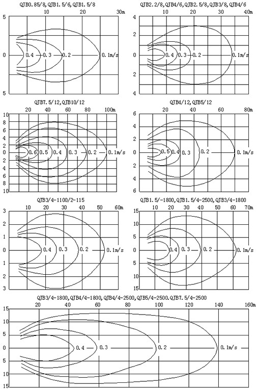 qjb型潜水搅拌机流速图: