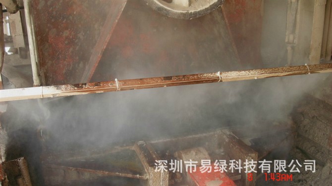 深圳市易绿科技有限公司自行研发生产的的工矿企业喷雾除尘雾化除尘高压微雾机,其原理是自来水进入系统后,经过5微米级的精密水质过滤器过滤,然后送入设备内置式自动给水贮水箱。利用超高压泵将水加压至40公斤以上,经过高压管路至高压喷咀雾化,雾滴的直径仅为3-15um这些微小的雾化颗粒能长时间漂浮在空气中漂浮在空间,由空气分解,它们具有较强的表面活性和吸附能力对悬浮在空气中的粉尘——特别是直径在5微米以下的可吸入颗粒进行有效的吸附,使粉尘受重力作用而沉降,从而达到抑尘作用。