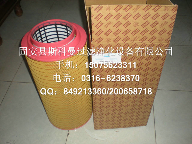 固安县斯科曼过滤净化设备有限公司是一家集科研、设计、生产、销售、服务为一体的现代化科技型企业,公司融合了国内外最新技术、拥有先进的检测设备和精良的制作工艺,致力为客户提供最优质的产品和完善合理的设计方案。我公司专业生产螺杆式压缩机三滤系列、压缩空气高效过滤器系列、液压油过滤器系列,主要替代生产的产品:螺杆压缩机三滤系列有英格索兰、阿特拉斯、复盛、寿力、柳州富达、康普艾、伯格、昆西、博莱特、施耐德.日佳力士、宁波欣达、玛泰、正力精工、凌格风、艾能、神户制钢、日立、田边、岩田、凯撒等。液压油过滤器系列有德国hydac、美国pall、马勒、派克、英德诺曼等。压缩空气高效过滤器系列有汉克森、多米尼克等适用机型,广泛应用于电力、石油、医药、机械、纺织、化工、冶金、交通、环保等各个领用。我公司以“视质量为生命,以信誉求生存,以科技促发展,以优质品牌为客户服务”的经营理念竭诚为您服务。本公司客根据用户实际需求为用户提供各种过滤精度、规格的空气过滤器及滤芯:阿特拉斯螺杆式空压机油气分离滤芯产品说明与注意事项:产品说明:油气分离滤芯滤材选用美国hv公司及美国lydall公司超细玻璃纤维负合滤材制作,压缩空气中的雾状油气混合物通过油分芯时可以完全被滤除。压缩空气含油量可以控制在3~6ppm,压缩空气油雾颗粒可以控制在0.1um以下。油分芯使用寿命3500~5200h,润滑油品质、环境对其寿命影响严重。初始压差:≤0.02mpa。注意事项:油气分离器桶内润滑油面应控制在规定的位置,通常为油窥镜1/2~2/3处。二次回油管及单向阀保持通畅和规定位置。排气压力调整至规定值。压缩机工作温度正常,压力维持阀正常.阿特拉斯螺杆式空压机空气滤芯产品说明与注意事项:产品说明:空气过滤器滤芯滤材美国hv公司及韩国ahlstrom公司木浆滤纸制作,滤除悬浮在环境空气中的尘埃、沙粒、水分、油雾等杂质。过滤精度≤10um,过滤效率:98%。空气过滤器滤芯使用寿命2000h左右。注意事项:根据使用情况定期反吹。滤芯的额定进气量须大于主机的额定进气量。选用进气阻力低、容尘量大的空气滤芯。将滤芯放置在干燥、通风处,以免受潮影响使用寿命。阿特拉斯螺杆式空压机机油滤芯产品说明与注意事项:产品说明:润滑油滤芯滤材选用美国hv公司超细玻璃纤维复合滤材和韩国ahlstrom公司纯木浆滤纸制作,滤除润滑油中的固体颗粒、杂质、油劣化物等,保护主机等运转部件。过滤精度10~15um。润滑油滤芯使用寿命2000h左右。注意事项:安装时在密封胶垫表面涂抹润滑油。劣质润滑油及牌号不匹配的润滑油混合使用会加速积碳的生成,导致润滑油滤芯使用寿命缩短.阿特拉斯空压机空气滤芯:1613740700 1613950300 1619126900 1621510700 2914501700 2914501800 2914507700 1613872000 1619126900 1613872000 1613740700 1613740800(2901043100) 1613950100 1603950300 1613800400(2901043100)1619279800(290100500)1030097900(2906009200)1030097900(2906009200) 1621054799 1621054799 1627009499 1621054600 1030107000 1613900100塑胶盖 1619126900塑胶盖 1613872000塑胶盖 1613840700塑胶盖 1613740800塑胶盖 1613950100塑胶盖 1622185501塑胶盖 1613800400塑胶盖 1613950300塑胶盖 1621510700塑胶盖 1030107000塑胶盖 1030097900 1621054700 1621574200 1621054600 1621574300 1619279700 1619279800 1619279900 阿特拉斯空压机机油滤芯:1613610500 1613610590 1614727300 1614727399 1619622700 1513033700 1613610500 1614727300 1622314200 1622365200 1614874700 1202804002 1621875000阿特拉斯空压机油气分离滤芯:1612386900 1613750200(2901034300) 1622007900 1613243300 1613688000(2901021300) 1613839700(2901056600) 1613730600(2901007000) 1613800700(2901043200) 1613955900(1613984000) 1614642300(2906009800) 1614905400(2906056400)1614905600 1614642300 1614704800(2906020200)1614952100(2906058800) 1622007900 1622087100 1612386900 1613750200 1622051600 1613243300 1613688000 1613839700 1613839702 1522646000 1622569300 1622314000 1613730600 1622365600 1613800700 1613984000 1613984001 1613955900 1614905400 1613642300 1614905600 1614704800 1614952100 1621938499 1621938599 1621938699 1604132880曼牌空压机滤芯:c20500 c16400 c24745/1 c25710/3 c30810/3 c23610 c30810 c11100 c12500 c14200 c23185 c23440/1 c23440/3 c30850/2 c30850 c33920/3 cf200 cf710 cf1430 c1250 c24820 c26980 cf1200 es310 c20325/2 c30810/3 c30850/2 c11100、c1131、c1132、c1134、c1140、c1150、c1250、c1176/3、c14113、c14200 c1450、c1632、c1633/1、c16400、c17100、c17201、c17225/3、c20325/2、c20500、c23115、c23174、c23185、c23440/5、c23610、c24650/1、c2555/2、c25710、c25740、c25860/1、c27585/3、c29352/1、c301537、c30810、c30850/2、c31220、c33920/3、c36840/1、cf1000、cf1200、cf1300、cf1600、cf500、cf610、cf710、cf810、c23513、c23632/1、c23750、c25740、c25860/2、c25990、c271020、c271170、c271320、c301330、c271050、c301530、c301730、cf1240、cf1250、cf1260、cf1420、cf1430、cf1440、cf1631、cf1640、cf1650、cf1820、cf1810、cf1830、cf1840复盛三滤:91101075;7113166010;7115166011;7113466010;91107012;91108042;200950121;91108022;91101175;91101200;91101300;91111001;91111002;91101150;91107032;7116166020;91111003复盛油分:91108-22、91101-02、91108-04、91114-003、9111-005、91111-300、91111-002、91111-005、91111-007等。机油滤:91107-012、711151-46950、71121111-48120、71151-46930、91107-023等。空气滤:71151-66010、71131-66101、71182-66101、71184-66010、7114111166010、71161412-660 复盛螺杆机专用油.油气分离器.机油过滤器.空气过滤器.高压胶管. sa220a/23020/30hp 油滤 91107012 w962 空滤 最