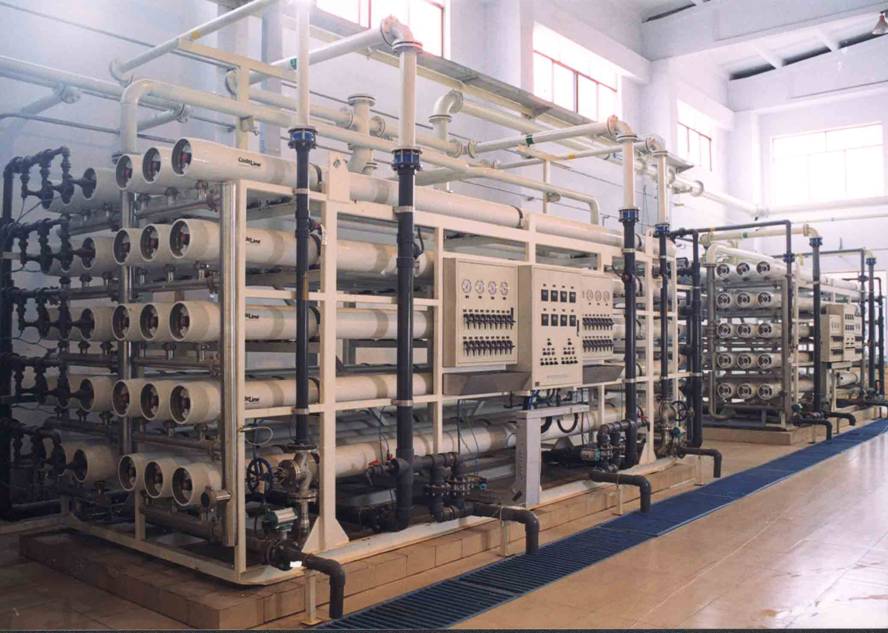 反渗透是最精密的膜法液体分离技术,它能阻挡所有溶解性盐及分子量大于100 的有机物,但允许水分子透过,醋酸纤维素反渗透膜脱盐率一般可大于95%,反渗透复合膜脱盐率一般大于98%。它们广泛用于海水及苦咸水淡化,锅炉给水、工业纯水及电子级超纯水制备,饮用纯净水生产,废水处理及特种分离等过程,在离子交换前使用反渗透可大幅度地降低操作费用和废水排放量。