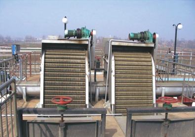 回转式格栅机传动装置、链轮、机架、齿耙等组成,齿耙材质为abs工程塑料、尼龙或不锈钢制成,机架材质一般由碳钢或不锈钢制成。将齿耙按一定的顺序通过齿耙轴与链轮的组合,形成串连的封闭式齿耙链,由传动装置带动两边链轮在迎水面自下而上的按顺时针方向旋转,格栅的有效间隙便是齿耙的间距,由此形成过流和分离的空间,由于齿耙的特殊结构形状,当齿耙携带杂物到达格栅上端后反向运行时杂物依靠自重脱落,前、后排齿耙间产生相对自洁运动,同时另设的一对胶板刷对每排经过这里的齿耙作清污工作,至此,完成一个清污的循环工作。