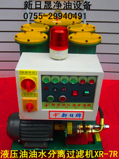 油水分离机主要是为液-液分离设计的,它含两种滤芯,即:聚结滤芯和分离滤芯。在油品除水系统中,油品流入聚结分离器后,首先流经聚结滤芯,聚结滤芯滤除固体杂质,并将极小的水滴聚结成较大的水珠。绝大部分聚结后的水珠可以靠自重从油中分离除去,沉降到集水槽中。然后油品又流过分离滤芯,由于分离滤芯具有良好的亲油憎水性,从而进一步分离水分,最终,洁净,无水的油品流出聚结分离器。液压油、机械油、冷却油等润滑油在运行过程中,水分、气体、挥发物质和杂质由于各种原因不可避免会混入润滑油中,加速油的氧化,并助长了泡沫、积垢和油泥的形成,降低了油的润滑、散热、分散、冷却等性能。同时引起金属零部件的锈蚀与磨损,影响液压系统、动力系统、润滑系统的正常运行。本系列产品可以通过破乳、聚结、分离过程,去除介质中的游离水。还可以滤除介质中的固体颗粒。控制油液清洁度,可以达到滤除介质中的固体颗粒。控制油液清洁度,可以达到nas6极或更高。