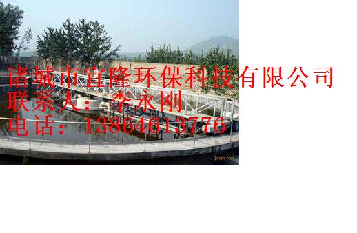 后在池底形成污泥层, 比重较经的浮于液面,工作桥在周边驱动机构的带动下沿中心支座作缓慢旋转,较支式刮臂依据重力带动刮板将污泥逐层由池周刮向中心集泥坑,通过池内水压将污泥排出池外,浮渣刮板沿导流筒将浮于液面的浮渣撇向池周的排渣斗内,通过自动冲洗机构将浮渣排出池外。