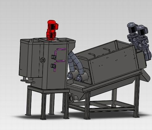 2、叠螺污泥脱水机是由叠螺主体、过滤装置、集液槽、驱动装置、絮凝槽、支撑架体等组成。污泥脱水机工作时,通过污泥泵将污泥抽升至絮凝槽,同时也通过加药泵输送药液,搅拌电机同时启动整个搅拌系统将污泥和药液混合,实现充分絮凝,达到液位线后,叠螺主体开始工作,经过浓缩的污泥随着螺旋轴的转动不断往前移动;在螺旋推动轴依次连续运转推动下,污泥中的水分受挤压排出,滤饼含固量不断升高,最终实现污泥的连续脱水。