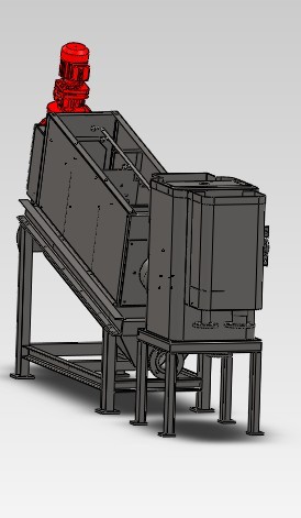 2、脱水:经过浓缩的污泥随着螺旋轴的转动不断往前移动;沿泥饼出口方向,螺旋轴的螺距逐渐变小,环与环之间的间隙也逐渐变小,螺旋腔的体积不断收缩;在出口处背压板的作用下,内压逐渐增强,在螺旋推动轴依次连续运转推动下,污泥中的水分受挤压排出,滤饼含固量不断升高,最终实现污泥的连续脱水。