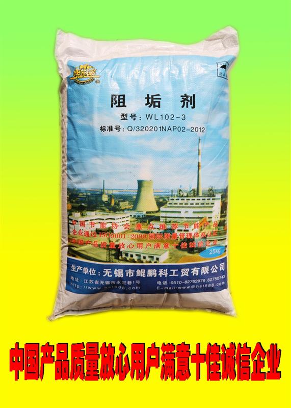 “惠施通”wl102-3型阻垢剂,外观为白色结晶体。该药剂主要是对循环水中的钙、镁离子起到分散作用,不让它吸附到管壁表面形成水垢。