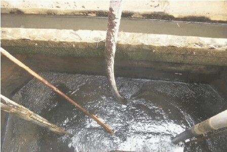 1、用铁钩打开化粪池的盖板,再用长竹杆(8m)搅散化粪池内杂物结块层。