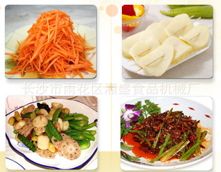将固体和软体食物,如根茎植物、洋葱头、大葱青椒、苹果、柠檬和黄瓜等切成片。1mm刀片用于将干奶酪切成薄片。4mm和4mm以上的刀片用来片切番茄、香蕉、蘑菇等,以及将色拉生菜和白菜切成丝片。4mm刀片与适当的切丁网栅组合,把洋葱头切碎。