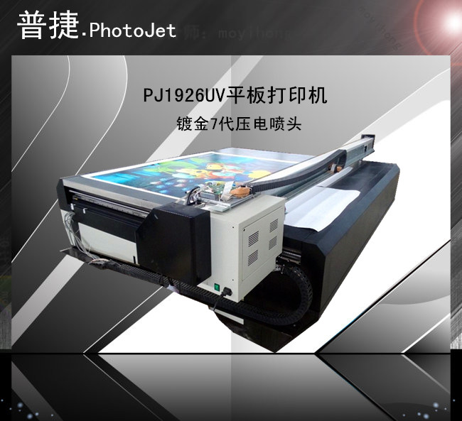 photojet uv平板打印机 输出制作的画面具有环保特性,所以广泛用于户内制作,例如:在玻璃、铝塑板、木板、扣板、天花板吊顶、有机板、陶瓷、波浪板、泡沫板、金属板、塑料、纺织物、墙纸、瓷砖、大理石等介质上直接打印景美画面