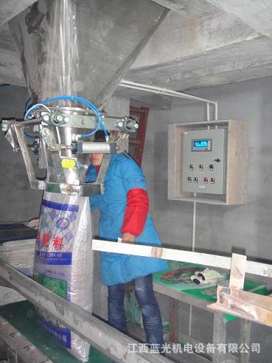 主要由物料进口、给料机构(闸门)、称量斗、夹袋机构、机架、吸风口、气动系统、传感器、控制箱、输送和缝包机构等组成。